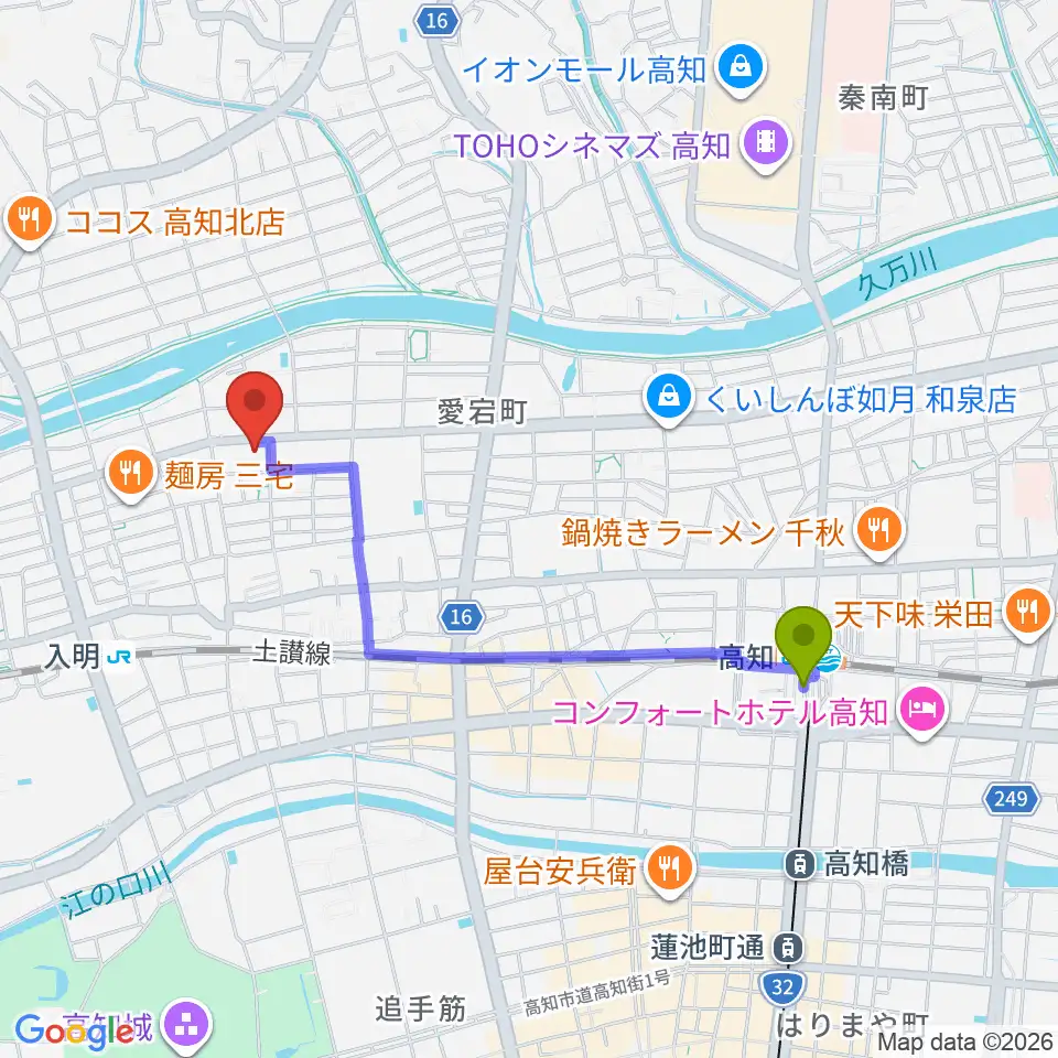 Googleマップで経路表示