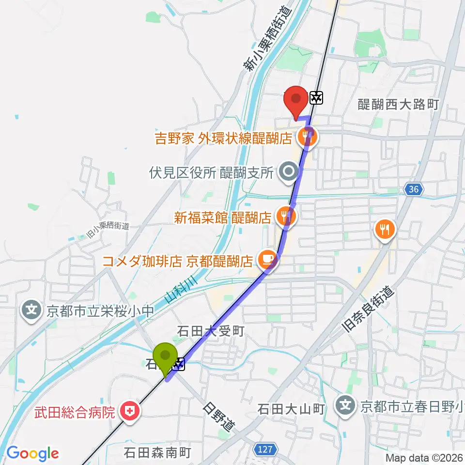 Googleマップで経路表示