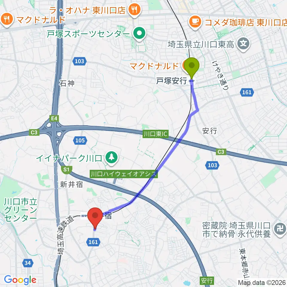 Googleマップで経路表示