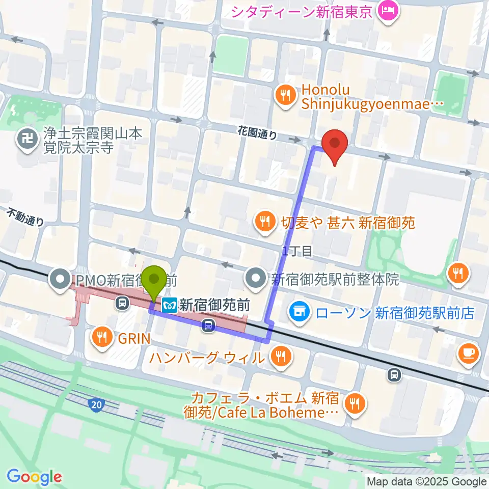 新宿御苑前駅から