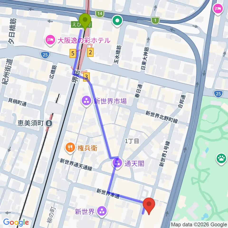 恵美須町駅から