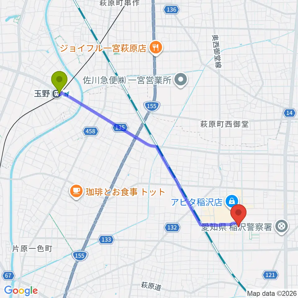 Googleマップで経路表示