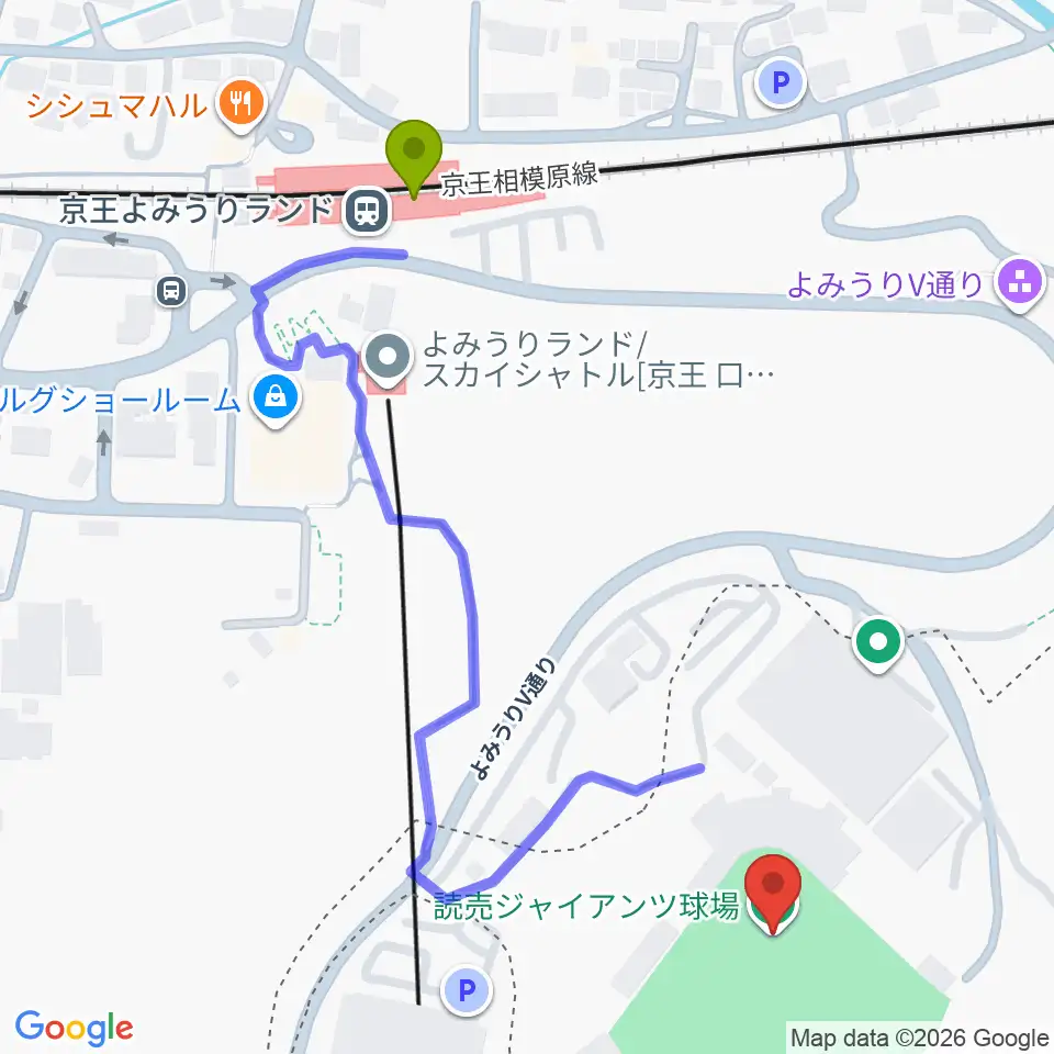 読売ジャイアンツ球場の最寄駅京王よみうりランド駅からの徒歩ルート(約6分)地図