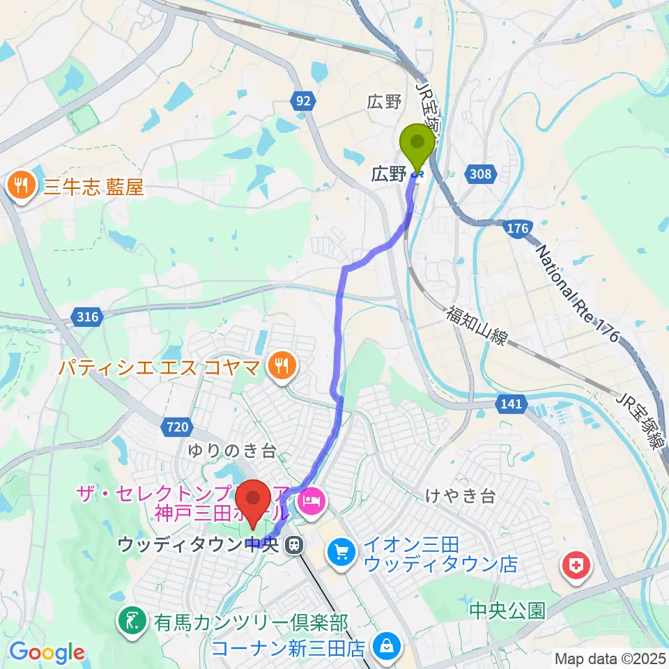 Googleマップで経路表示