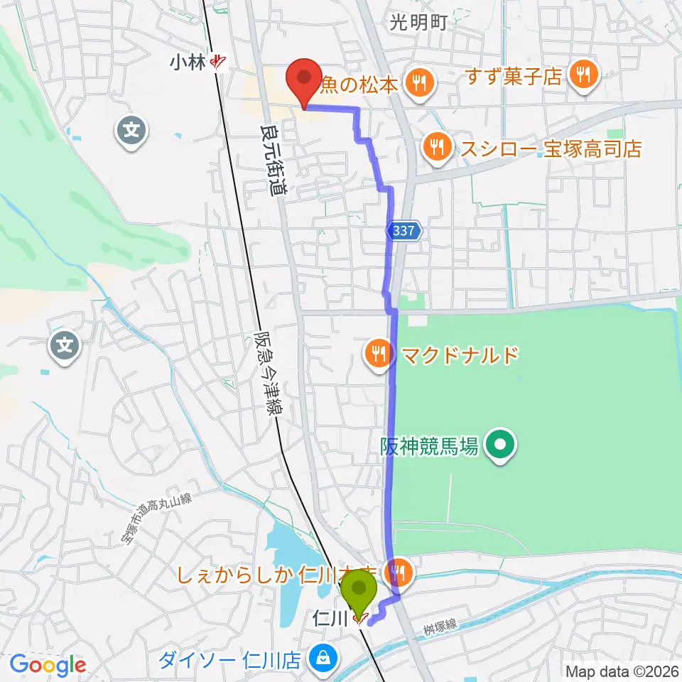 Googleマップで経路表示