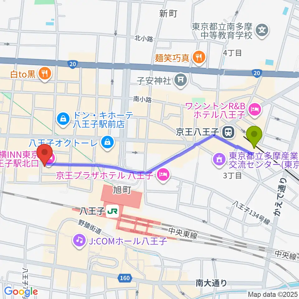 京王八王子駅から八王子RIPSへのルートマップ地図
