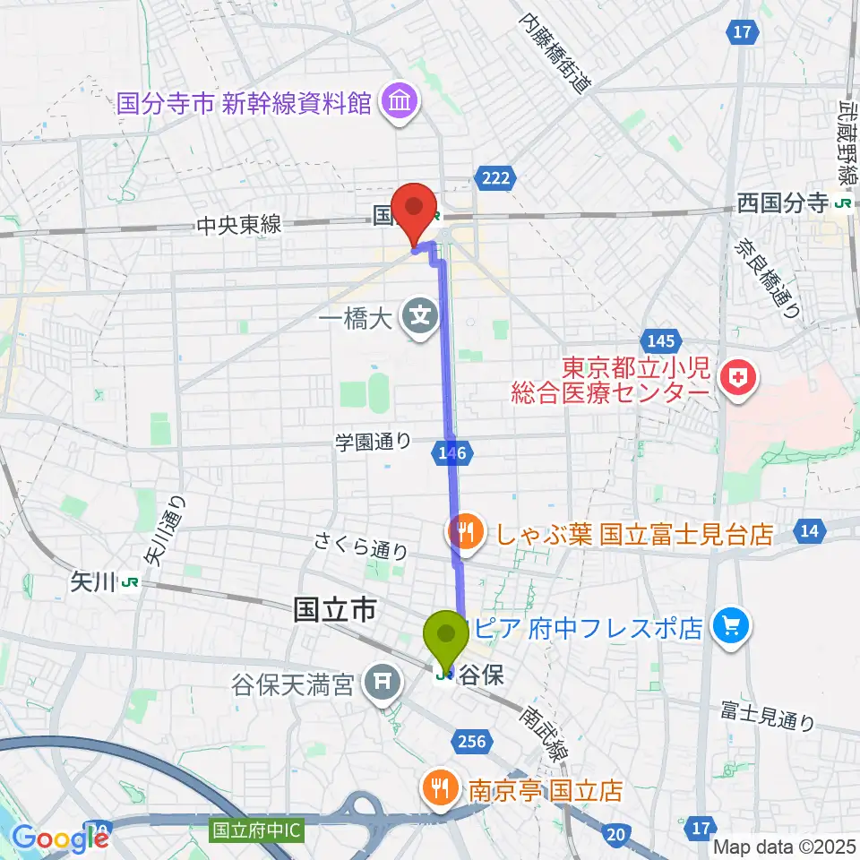 谷保駅から国立NO TRUNKSへのルートマップ地図